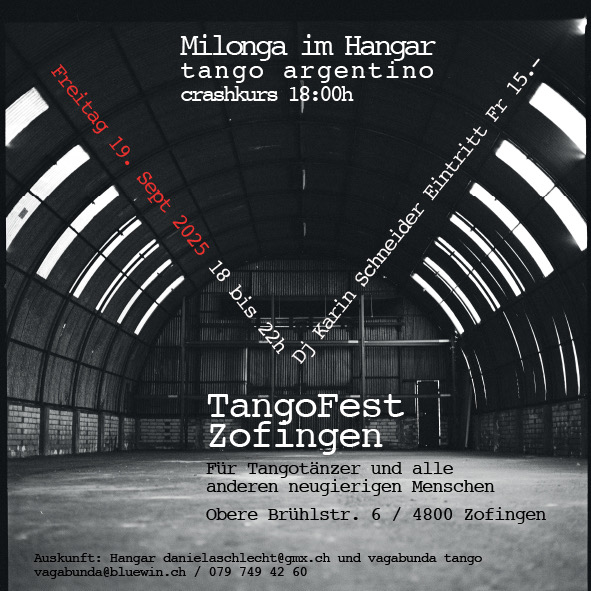 HANGAR freut sich auf ein unvergessliches Tangofest. Es werden auch Crash-Kurse angeboten.